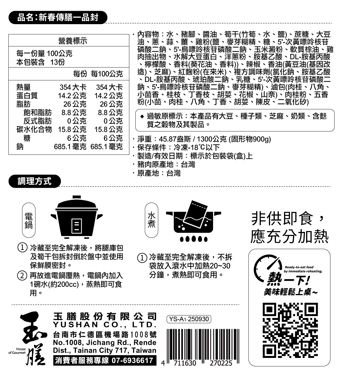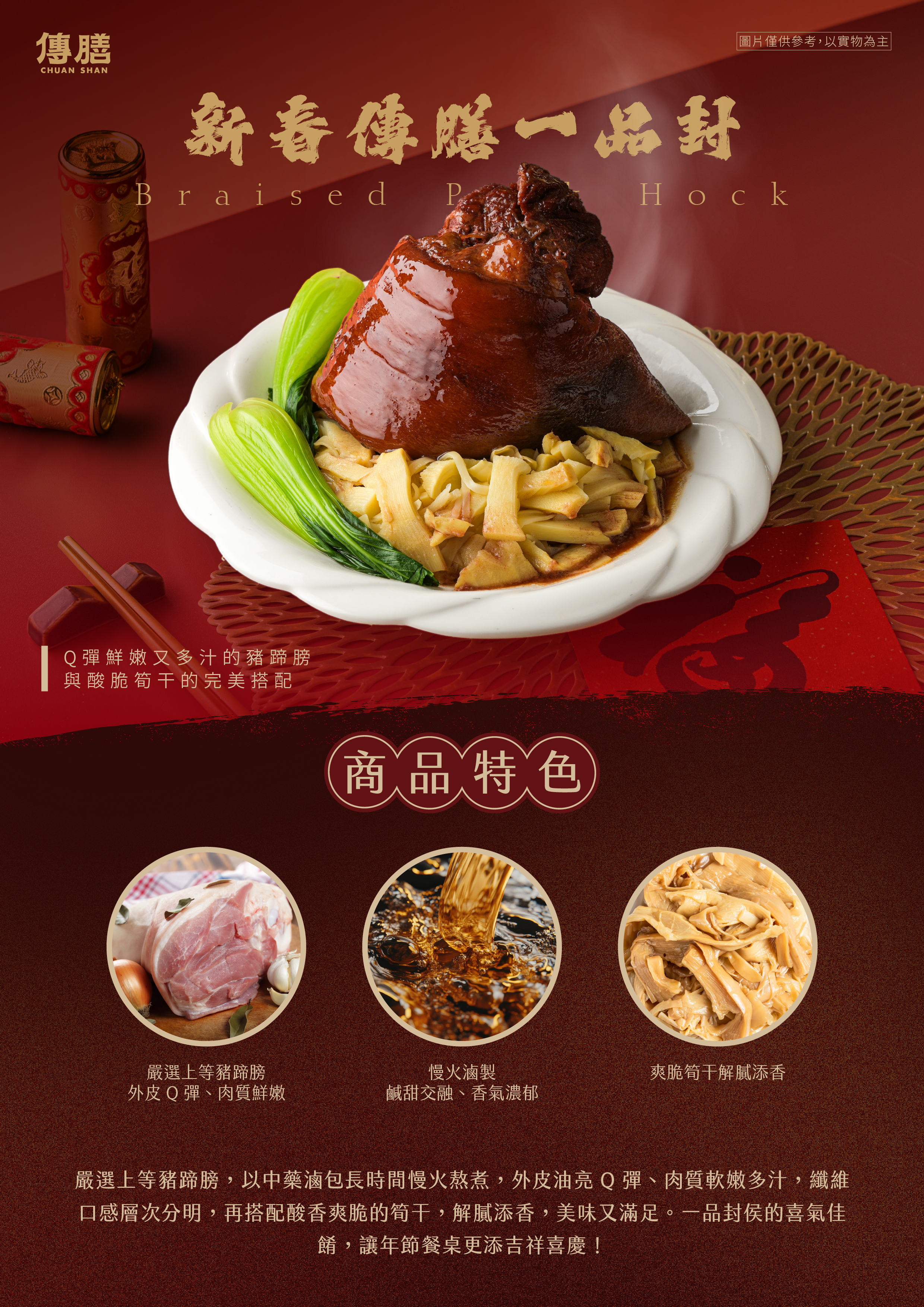 1. 嚴選上等豬蹄膀,外皮 Q 彈、肉質鮮嫩。