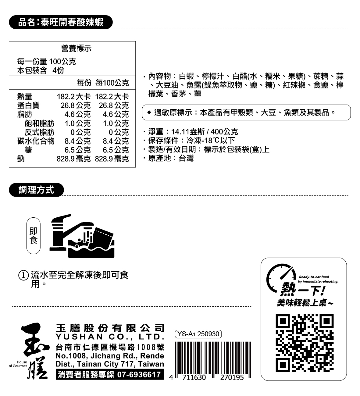 1. 嚴選白蝦,肉質鮮甜彈牙。